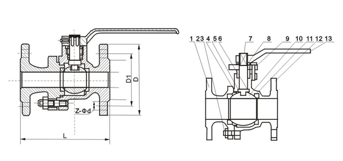 球閥的球體是浮動的,在介質壓力作用下,球體能產生一定的位移并緊壓在出口端的密封面上,保證出口端密封。