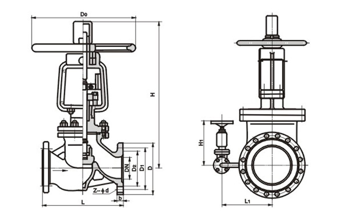 2、介質(zhì)流向:PN≥1.6MPa、DN≤100介質(zhì)由閥瓣下方流入閥瓣上方(即低進(jìn)高出),DN≥125介質(zhì)由閥瓣卜方流入下方(高進(jìn)低出)o對(duì)于DN≥125的閥門采用介質(zhì)高進(jìn)低出的流向,一方面足內(nèi)旁通閥結(jié)構(gòu)上的需要,另一方面由于介質(zhì)壓力的作用使閥門的關(guān)閉力大大減小。
