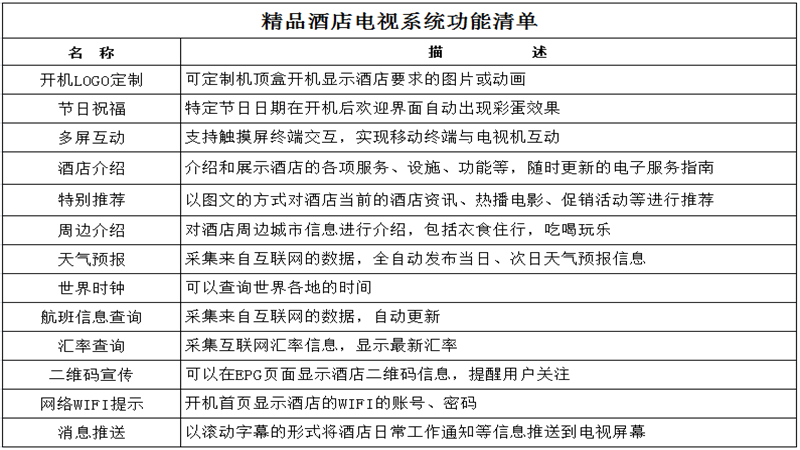 高速IP網絡:傳送IP流量進行數字內容分發所需要的高速寬帶網絡,對酒店而言,可利用酒店原有局域網絡或新部署局域網絡,而無需另外部署有線電視同軸網絡。